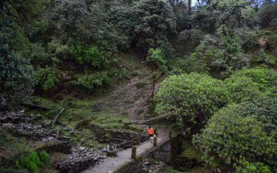 While most popular treks in Uttarakhand are found in the Garhwal region, the Kumaon region holds equally stunning beauty that remains quite unexplored. The Ranthan Kharak Trek is one such offbeat adventure that will leave you mesmerized with its pleasant landscapes. This moderate-grade trek takes you through lush Oak and Rhododendron forests, charming meadows, and scenic clearings, making it a perfect choice for you, if you want to experience the lesser known beauty of the Himalayas. The trek starts and ends at the picturesque village of Gogina, winding through dense forests that burst into vibrant red and pink hues in the spring. As you walk through these serene woodlands, you’ll come across beautiful clearings, known as ‘Kharaks,’ where the forests open up to reveal panoramic views of snow-covered peaks which is truly a magical experience.
